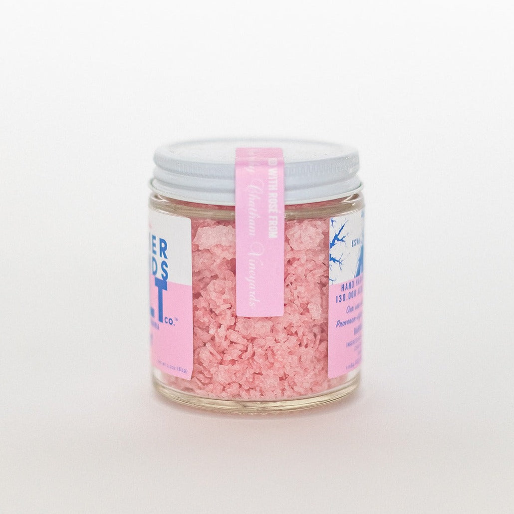 We've infused our Pure Flake Salt with our favorite, Provence-style rosé made by our neighbors at Chatham Vineyards. The result is a blushing pink salt with a subtle kiss of raspberry and white peach. Adds an elegant hint of color and oceanic flavor to cakes, cookies, ice cream or whipping cream over fruit for the perfect salty-sweet combination. Or sprinkle on fresh fish or spring veggies and pair with a glass of crisp rosé. Also makes a lovely rim for cocktails! We hand make each of our infused salts in small batches to ensure that each jar is filled with fresh flavor, beautiful aroma and vibrant, natural color. No preservatives are added.
